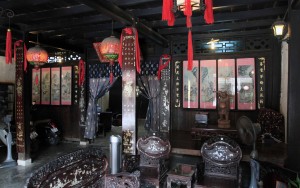 I woke up today and got ready to see the city of Hoi An; downstairs in the hotel lobby, I had the staff purchase a train ticket to Hanoi (scheduled for tomorrow) for me. First I bought a ticket for Hoi An’s historic sites at the ticket booth on An Hoi Bridge (the ticket allows visitors to enter in to five historic places in the ancient town); I then walked to the Quang Trieu Assembly Hall, which was built by the Cantonese in the 19th century as a meeting place and a temple for the worship of their gods and goddesses (such as Quan Cong, Thien Hau Thanh Mau (the Thien Hau holy mother), and the god of fortune); the assembly hall is built from wood and stone and constructed with the combination of Cantonese and Hoi An building style. I walked through the assembly hall and the garden in the back looking at all the statues of dragons and gods, as well as the reliefs on the walls. Next, I visited the Museum of Sa Huynh Culture, which has many original artifacts in its possession that were excavated in and around the city of Hoi An; unfortunately there were not many on display in the one room open to the public and the most interesting objects were three-pointed earrings made from stone and glass, as well as burial jars. After that brief visit, I then walked a short distance on Nguyen Thi Minh Khai Street, bypassing the Japanese Covered Bridge (since I snuck on to it yesterday and didn’t feel like wasting part of my ticket to walk across it again), to the old house of Phung Hung. This house was built in Vietnamese, Japanese, and Chinese styles and was nice to walk through, but it was set up as an excuse to sell souvenirs to tourists; when I told my tour guide for the home that I wasn’t buying any souvenirs, she immediately lost interest in me and quickly wrapped up the tour; also, there were not many historic furnishings in the house (once again, mostly souvenirs), so there wasn’t much to see at this stop either. I then walked east near the water way, passing the Japanese Covered Bridge again, to the Central Market before going to the Phuc Kien Assembly Hall, which was built by the Fukien Chinese in the late 17th century as a meeting place and temple; the assembly hall has a triple gate, a vestibule, a sanctuary, a rear house, and left and right wings; it is also where people come to pray for their safety, offspring, wealth, and happiness, especially during festivals. I then walked back through the ancient town and found a place to eat lunch; I had ram cuon (deep fried spring rolls with Indian taro, carrots, shrimp, pork, potatoes, and spices), and ga xao hat dieu (stir-fried chicken with cashews, fish sauce, garlic, peppers, lemon, and onions), and a beer – sadly the meal was very lackluster. After lunch, I walked back to the hotel, had a cup of Vietnamese coffee, and rested for about forty minutes inside my room.